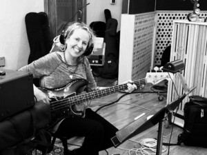 Nashville session bass player Alison Prestwood in the studio playing her Fender Precision